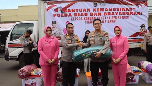 “Polda Riau hadir di sini setidaknya meringankan beban, kita membawa 9 truk untuk disampaikan kepada Kapolres Cianjur untuk nanti dibagikan kepada para pengungsi, semoga apa yang kita lakukan ini dapat bermanfaat bagi masyarakat kabupaten Cianjur,” ucap Kapolda Riau.