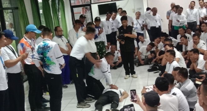 Pembekalan ini dilakukan oleh Tim Kesehatan PPIH yang didalamnya ada Perlindungan Jemaah dan Penanganan Krisis dan Pertolongan Pertama pada Jemaah Haji /PKP2JH), PPIH Kesehatan di Gedung B, Asrama Haji, Pondok Gede, Jaktim, Senin (12/1/2026). Pembekalan juga dilakukan dengan langsung simulasi.